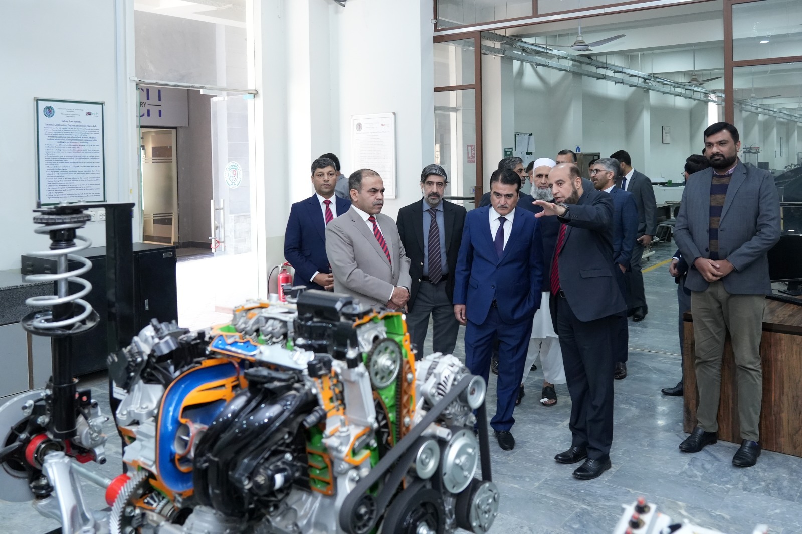Chairman SUPARCO, Mr Mohammad Yousef Khan was warmly welcomed by Lt Gen Moazzam Ejaz HI(M) Retd, Rector NUTECH, along with the University Management. Rector NUTECH briefed the Chairman on NUTECH’s ongoing Academic and Technical Programs, highlighting the university’s efforts in Skill Development and Applied Research. Both sides discussed areas of mutual interest, especially skills training, capacity building, and creating new opportunities to support Pakistan’s growing technological needs through R&D. Chairman SUPARCO has visited several key Facilities, including the Mechanical Engineering Labs, NUTECH Entrepreneur and Incubation Center (NEIC), NUTECH Incubation Center (NIC), Computer Engineering Design Labs and NUTECH Skills Department where he observed Student Projects, Advanced Equipment, and ongoing Innovation activities.