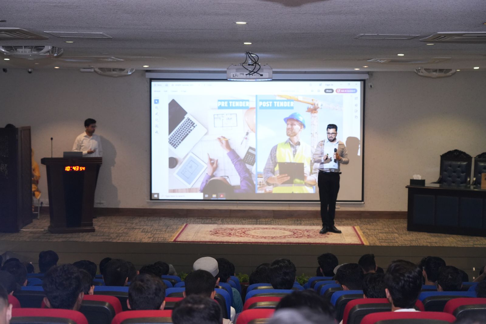 During the seminar, Mr. Saady Chohan demonstrated the practical application of PlanSwift software for material take-offs, cost estimation, and project planning. He emphasized the importance of adopting digital tools to improve precision, reduce project timelines, and strengthen decision-making in construction projects.